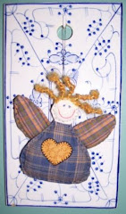 I tillegg til signaturen (som er skrevet av Elly) er det tegnet et lite pyntemotiv med vannfast tusjpenn. Jeg er kanskje mest fornøyd med stoffet på selve bollen. Det spørs om denne må håndquiltes...?